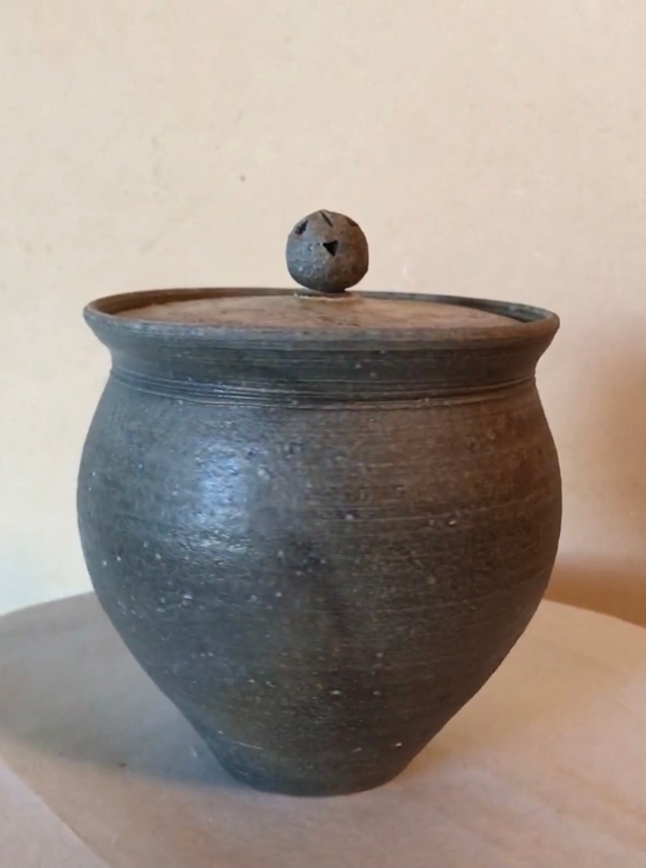 ・登り窯で焼き上げた焼き締めの蓋物 (釉薬は使っていません)